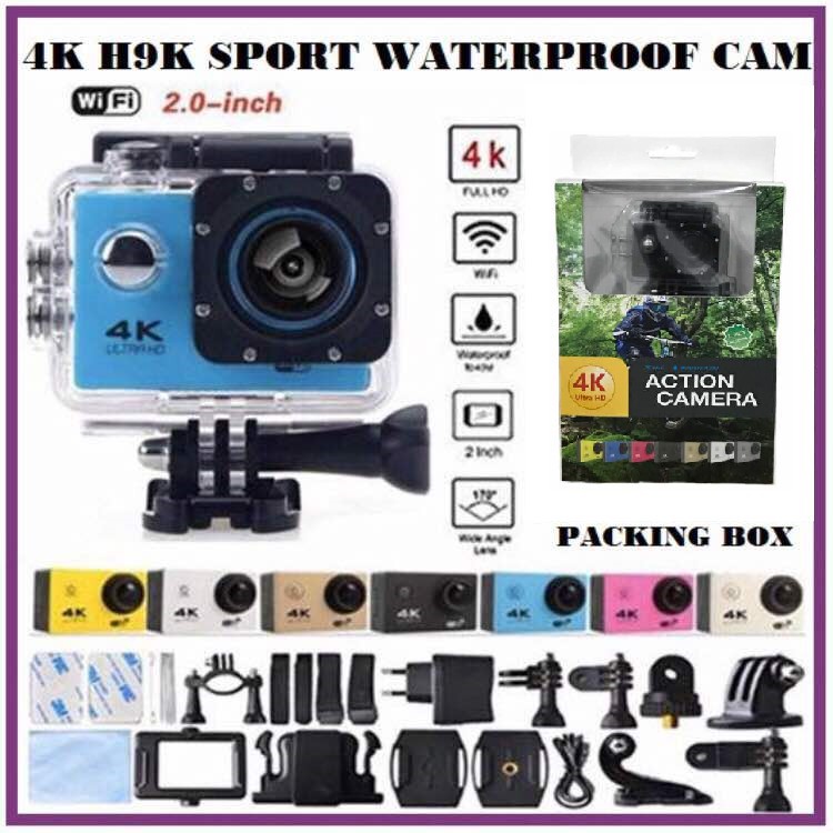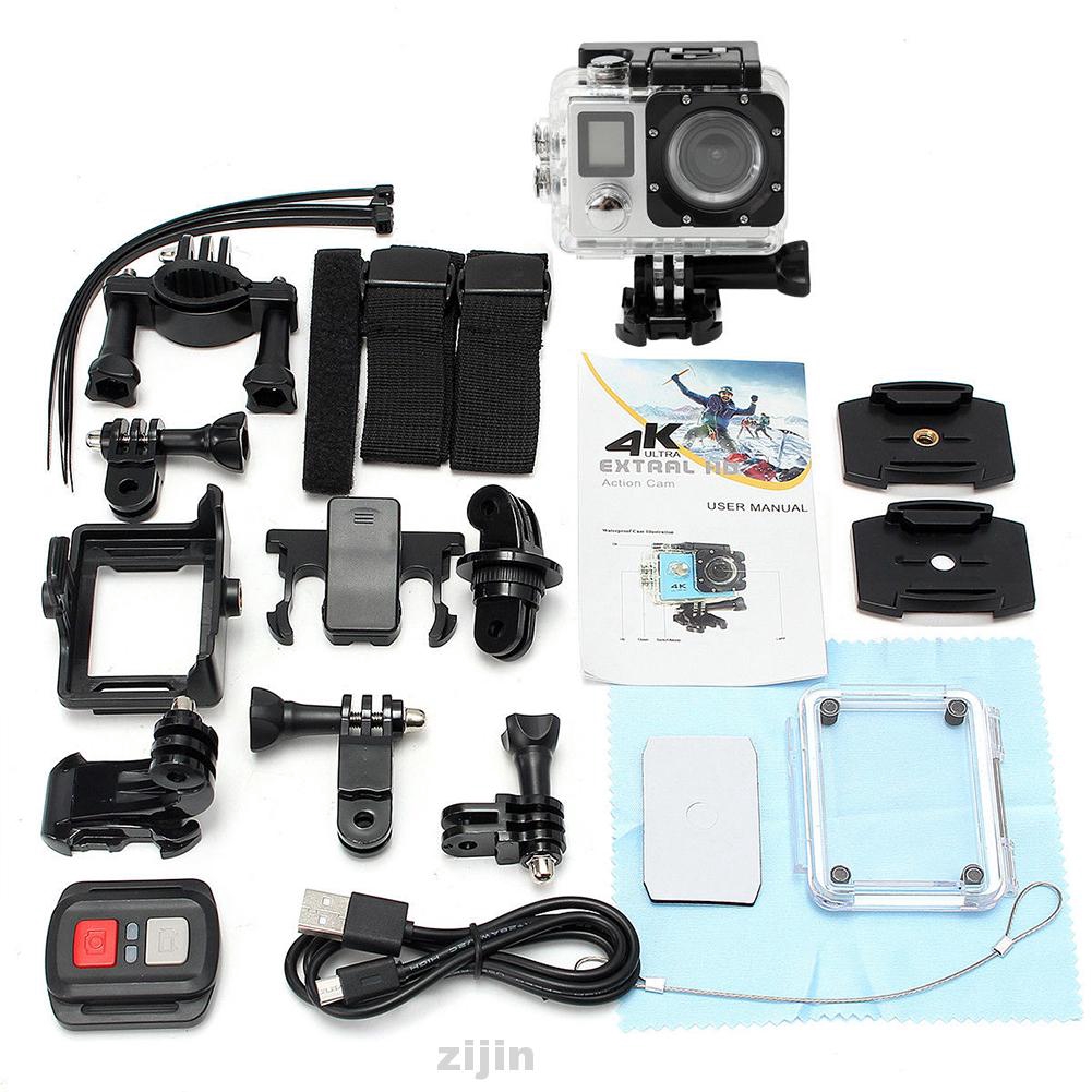 12mp 170 degree wide angle with 2 4g remote control for action sports camera the box contained the camera with case remote charger and lots of accesories. The camera in the waterproof case. I had a problem with sandisk 16gb class 10 though 32 gb class 10. Review y test de la cámara h9 ultra hd 4k.