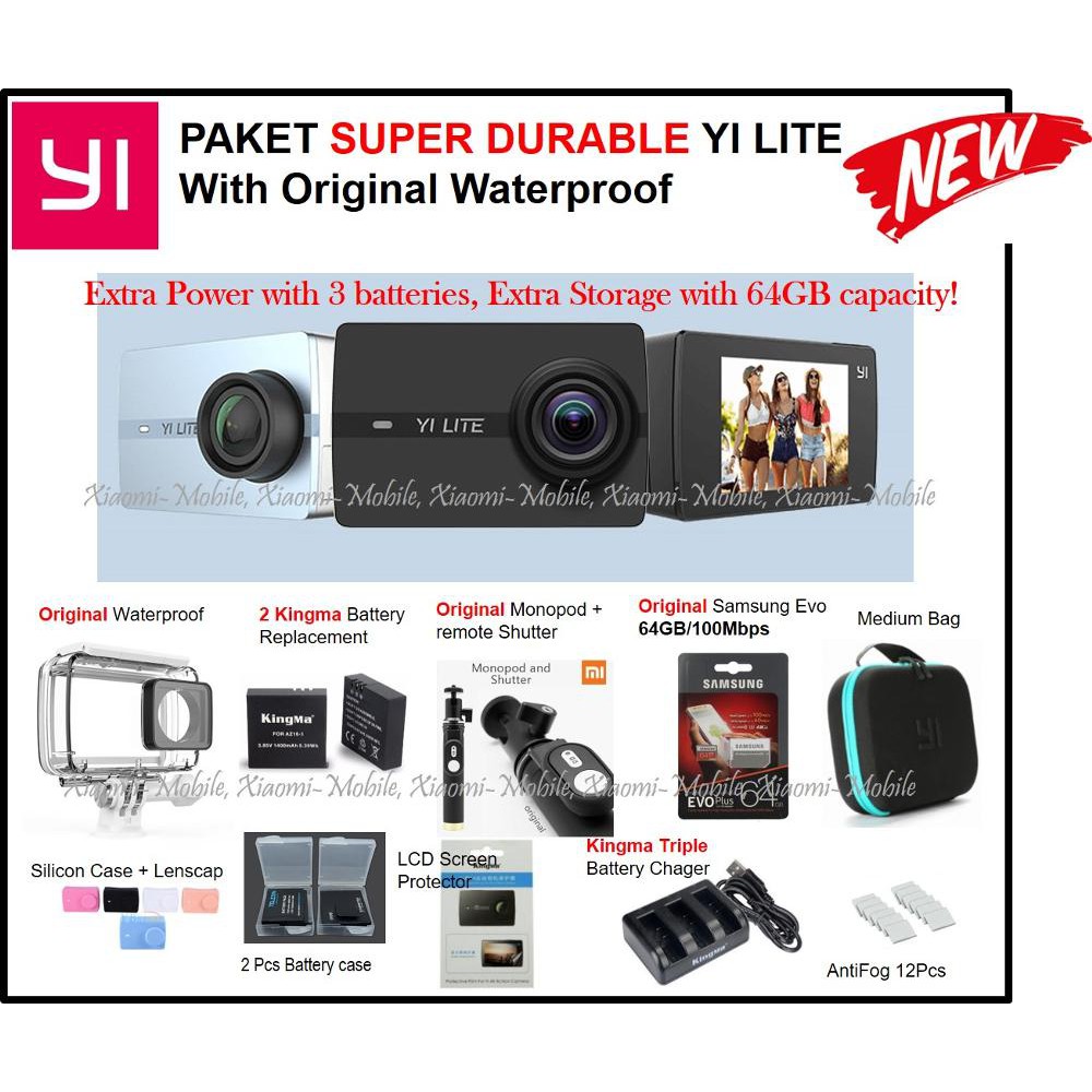 Kelengkapan xiaomi yi action camera. Sami tech tips 153 644 views. Untuk menghubungkan komputer ke xiaomi yi kita harus mempersiapkan beberapa software diantaranya. Adapun kelengkapan atau aksesoris pendukungnya adalah kabel data baterai monopod atau tongsis micro sd berkapasitas 16 gb class 10 dan waterproof case yang bisa membuatnya bertahan di dalam air. Paket lengkap xiaomi yi lite action camera with original waterproof rp2 399 900 4 9 terjual 105 jakarta barat xiaomi 4rb feedback positif xiaomi yi smart car dash cam international version kamera dvr mobil rp580 000 4 9 terjual 146 jakarta utara.